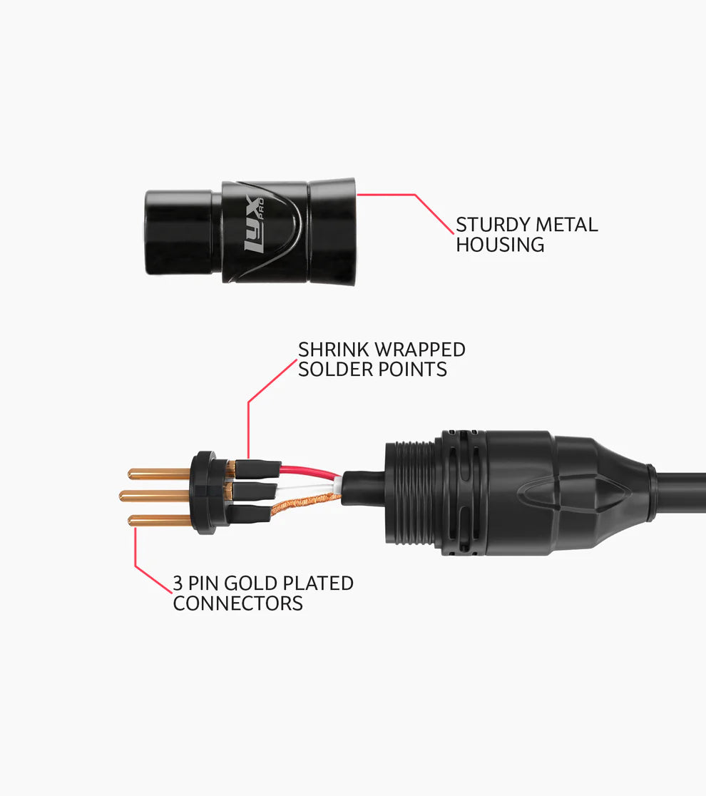 - Material: PVC Jacket with Oxygen-free Copper Conductors and Metal Connector Housing